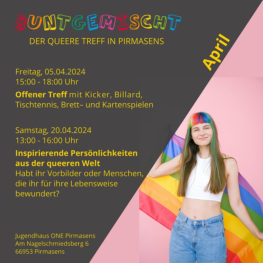 Wir sind ein offener Treff für Menschen, die sich mit der queeren Community identifizieren oder sie kennenlernen möchten. Auch Freunde und Unterstützer der Community sind herzlich willkommen. Wir wollen eine entspannte Zeit miteinander verbringen, neue Menschen kennenlernen, gemeinsame Aktionen planen und uns austauschen.